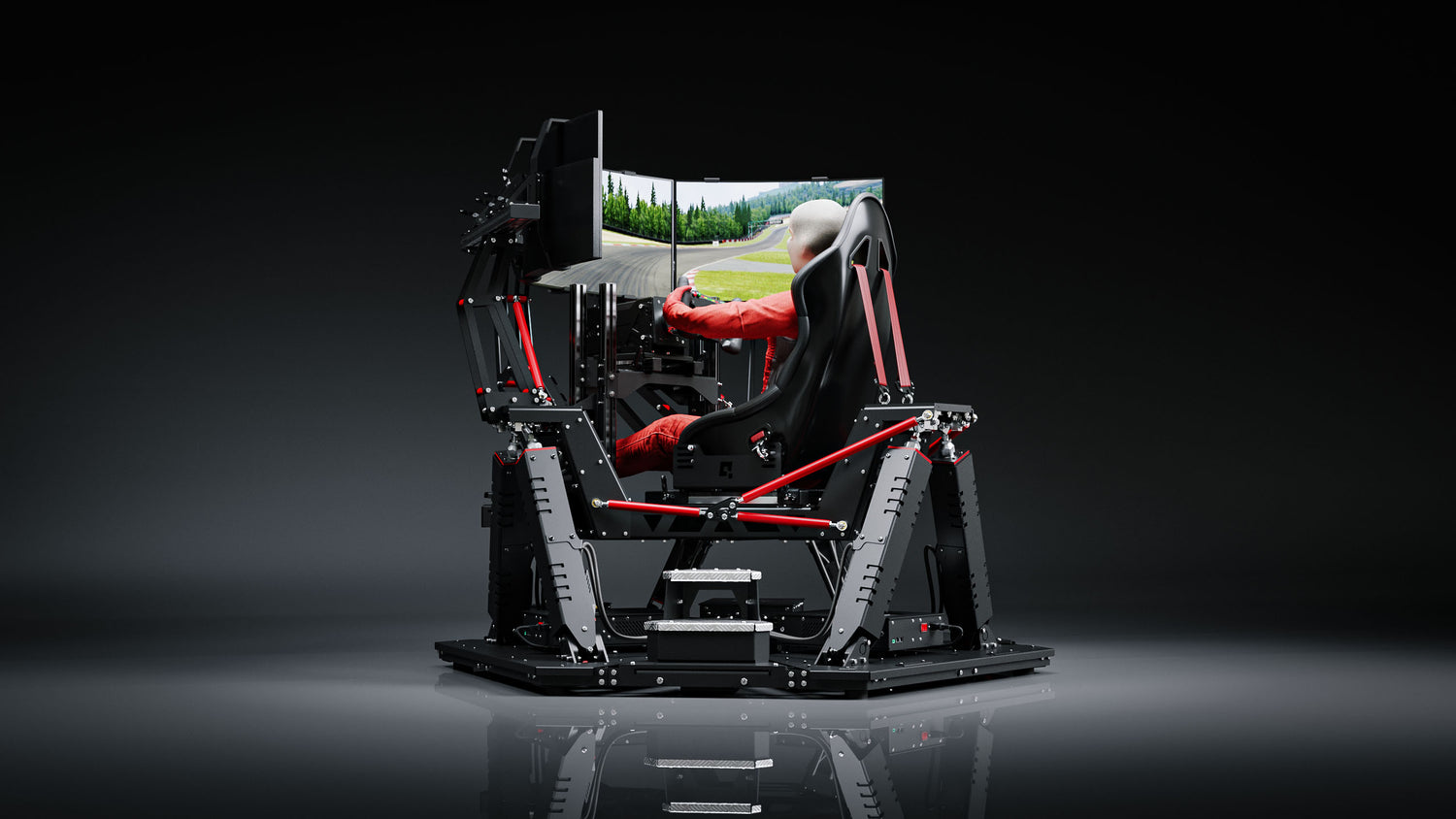 No. The base price covers the motion platform only. The dedicated cockpit set with integrated monitor mounts for three 32 inch screens is available as an add-on when selecting your configuration above. We strongly recommend the cockpit set unless you are integrating the platform into an existing custom rig.